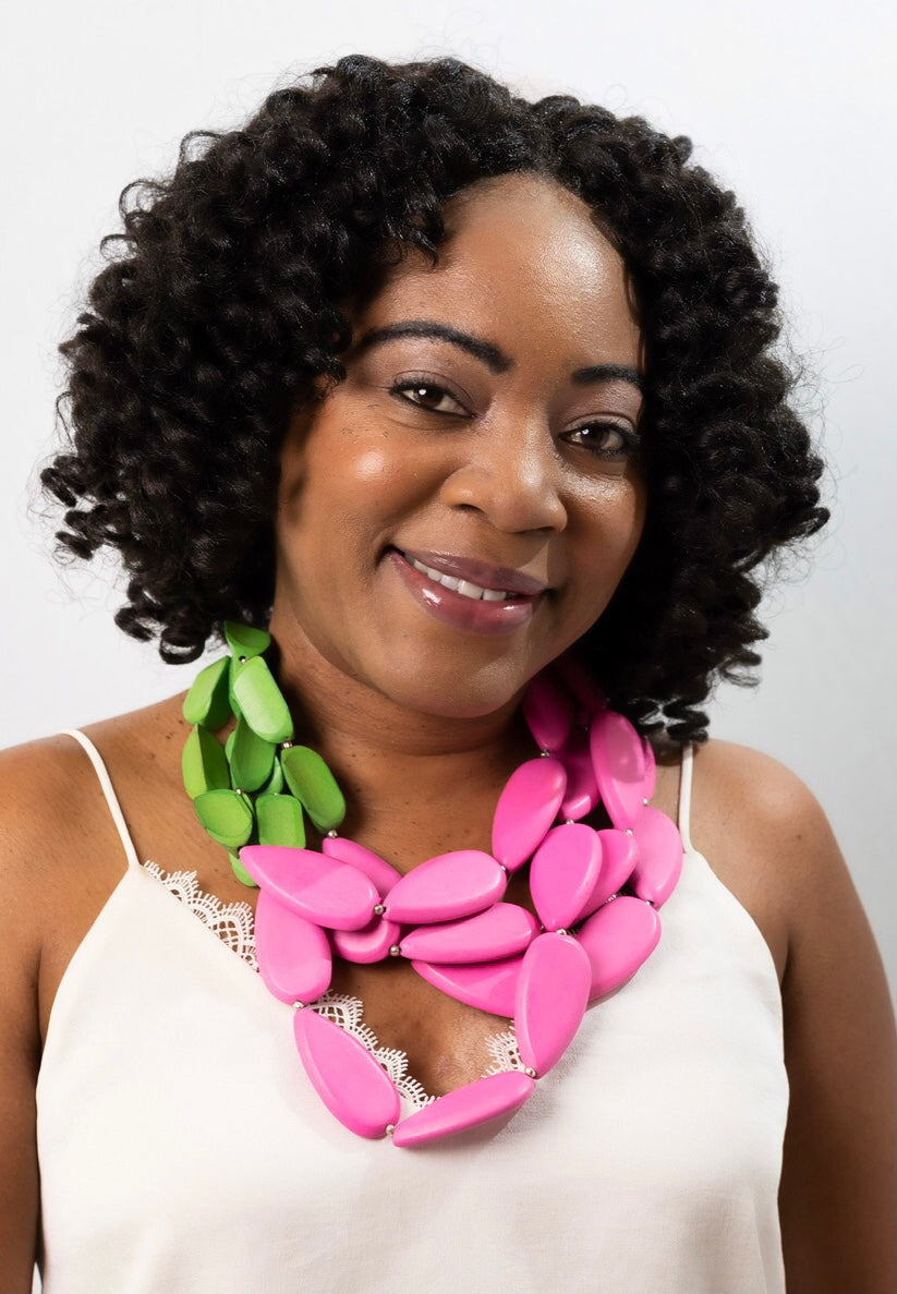 Earrings 3 pink on top green on bottom